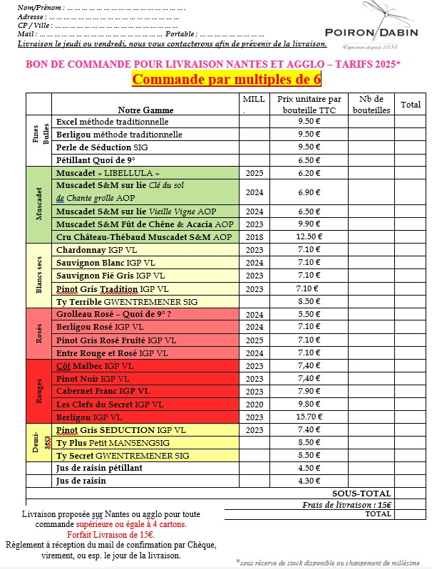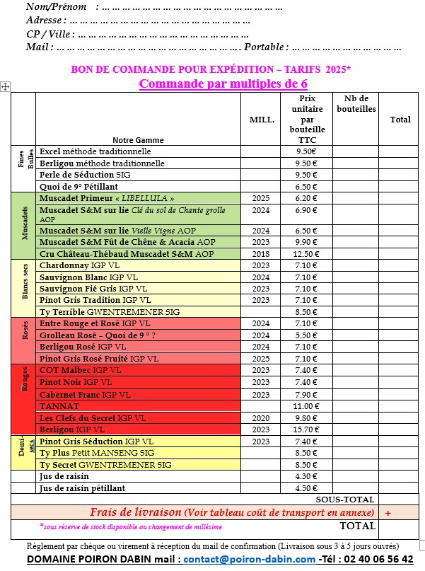 Comment remplir le Bon de Commande :
