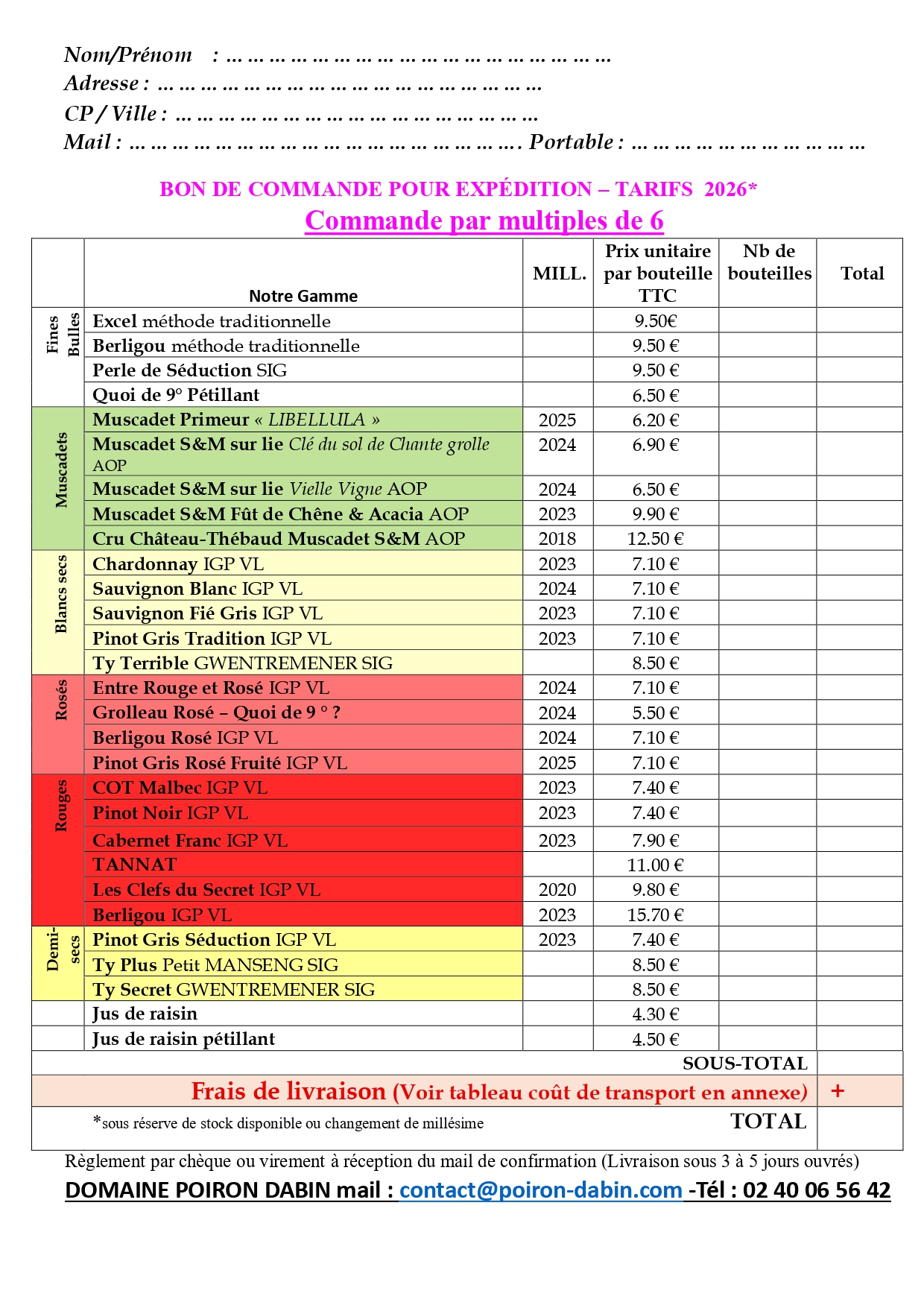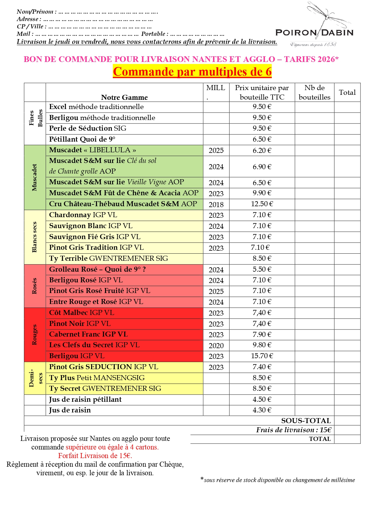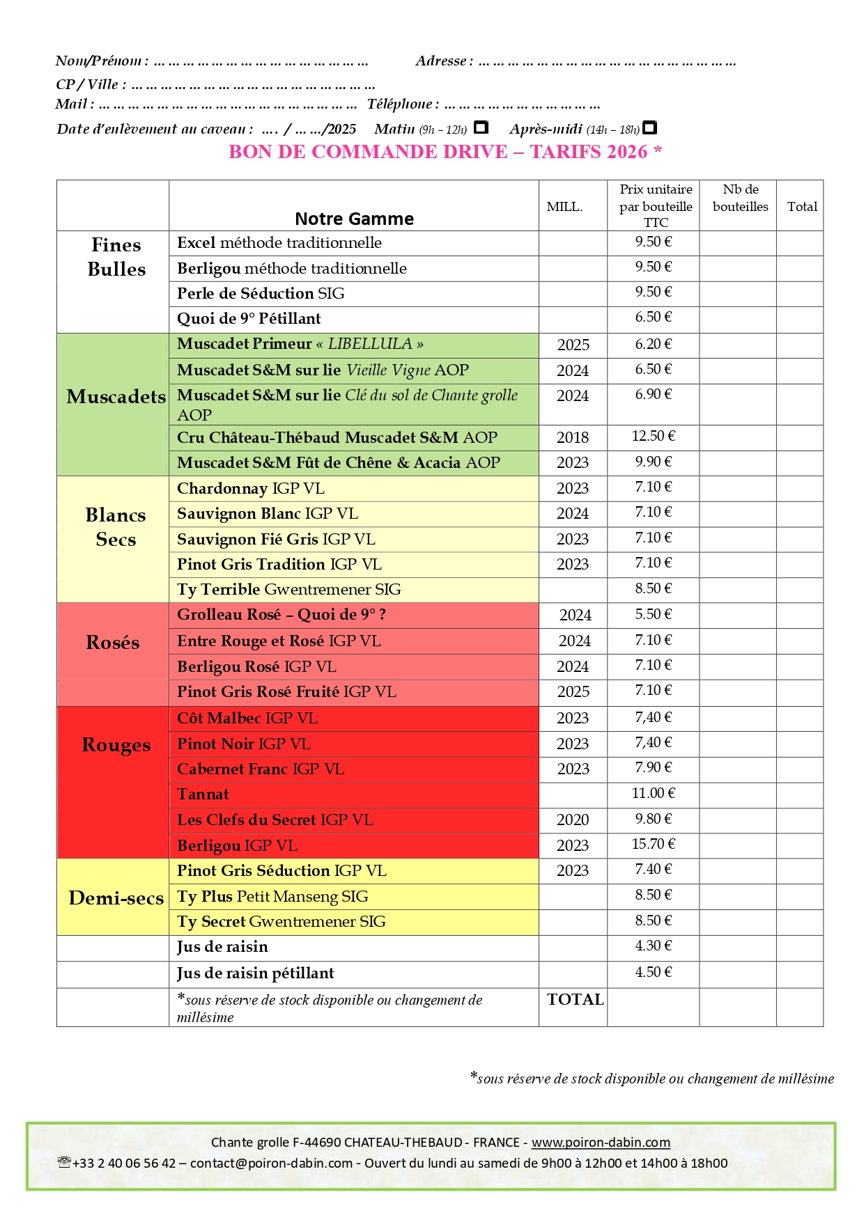 Comment remplir le Bon de Commande :